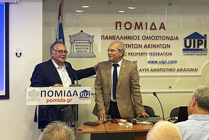 Στην εισήγησή του ο πρόεδρος της ΠΟΜΙΔΑ και της UIPI κ. Στράτος Παραδιάς αναφέρθηκε αναλυτικά στις ρυθμίσεις που έγιναν τα προηγούμενα χρόνια για τα θέματα των ακινήτων από τους Δήμους ύστερα από παρεμβάσεις της ΠΟΜΙΔΑ (μείωση αρχικά (1996) και απαλλαγή στη συνέχεια (2005) των κενών ακινήτων από δημοτικά τέλη, Διαγραφή όλων των αναδρομικών οφειλών δημοτικών φόρων και τελών μέχρι 31.12.2019 και καταβολή της διαφοράς σε 24 μήνες, Παραγραφή οφειλών προς τους Ο.Τ.Α. στη δεκαετία κ.α.)