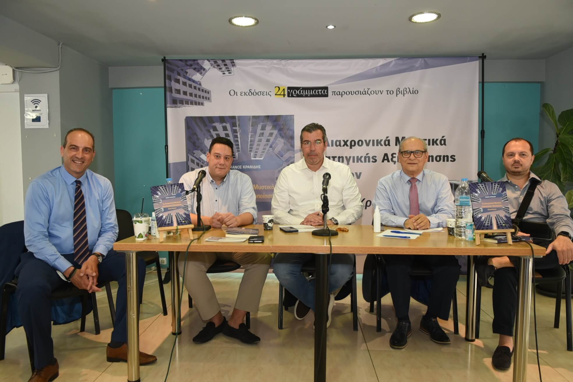 Στο εκλεκτό πάνελ ομιλητών συντονιστής ήταν ο Δημοσιογράφος ΕΣΗΕΑ και Real FM κ. Γιάννης Παπαγιάννης, και συμμετείχαν ο Προέδρος ΠΟΜΙΔΑ και UIPI Δικηγόρος Α.Π. κ. Στράτος Παραδιάς, ο Δημοσιογράφος ΕΣΗΕΑ Διευθυντής Real News κ. Κώστας Ρομποτής και ο Διευθύνων Σύμβουλος της ALPHA BANK Real Estate Management & Investment κ. Γιάννης Γκάνος. Χαιρετισμό απεύθυνε ο κ. Γιώργος Δαμιανός από τον εκδοτικό οίκο «24 Γράμματα».