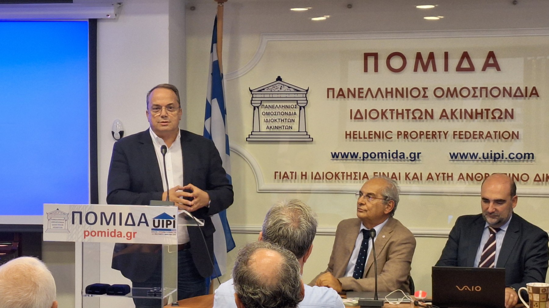 -Ο Μάνος Κρανίδης, Γραμματέας Ενημέρωσης της ΠΟΜΙΔΑ και υποψήφιος δήμαρχος Χαλανδρίου υπογράμμισε την επικοινωνιακή προσπάθεια της ΠΟΜΙΔΑ που κατέληξε στην υιοθέτηση πολλών προτάσεων των ιδιοκτητών από τις κατά καιρούς κυβερνήσεις. Τόνισε επίσης την ανάγκη στατικών ελέγχων στα κτίρια και ιδίως στα σχολεία. Τέλος υπογράμμισε την ανάγκη ελάφρυνσης της ιδιωτικής ακίνητης περιουσίας από τα τεράστια συσσωρευμένα φορολογικά βάρη της.
